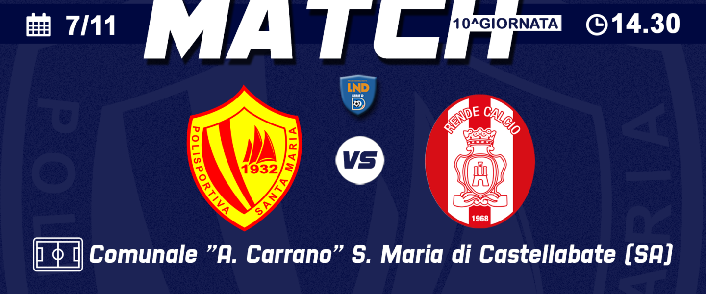 E’ attiva la prevendita dei biglietti per la decima giornata di campionato (serie D – girone I) tra Polisportiva Santa Maria e Rende in programma domenica 7 novembre allo stadio “Carrano” di Santa Maria di Castellabate con calcio d’inizio alle ore 14.30.