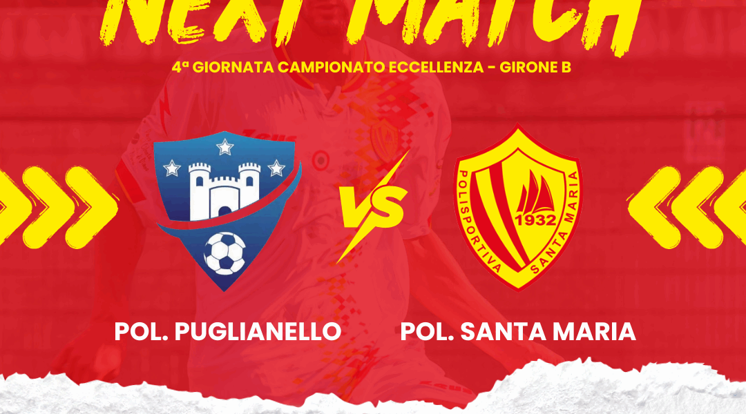 Tutto pronto per la 4ª giornata del Campionato di Eccellenza – Girone B,  Polisportiva Puglianello – Polisportiva Santa Maria, in programma sabato 20 settembre alle 15.30, allo stadio “San Giacomo” di Puglianello (BN)