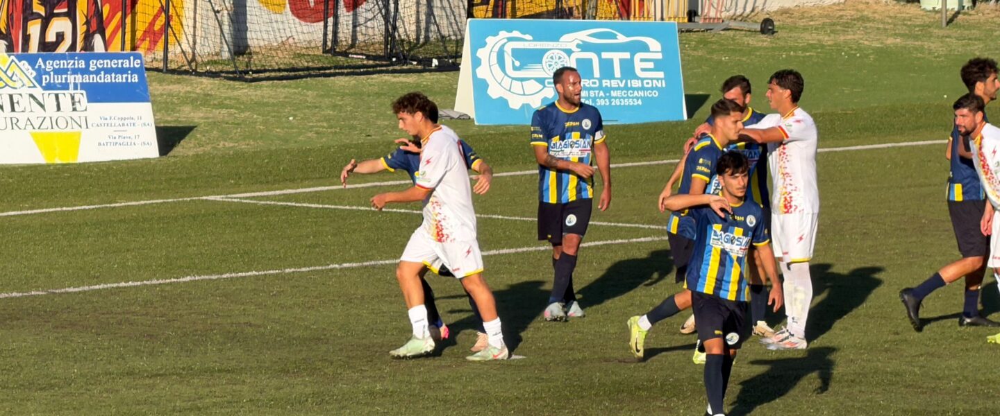 Santa Maria Cilento (3-5-2): Volzone; Di Pasquale (13’st Di Genio), Godoy, Ramacciotti; Vona, Cotello, Caprioli, Pappalardo (28’st D’Auria); Zerillo (45’st Messano); Margiotta (28’st Saponara), Capuozzo (33’st Noletta). A disp.: Lettieri, De Cono, Ciornei, Severino. All. Ferrara