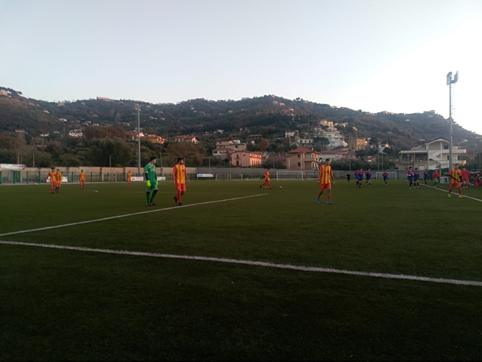 Terza vittoria consecutiva in una settimana per la Polisportiva Santa Maria che, dopo aver battuto Alfaterna e Faiano, supera a domicilio la Palmese per 1-3. I cilentani recuperano così 7 punti in 7 giorni ai napoletani, ora lontani 5 punti in classifica dai giallorossi. In una cornice di categoria superiore la Polisportiva va vicina al vantaggio al minuto numero 8: le torri cilentane, su azione nata da angolo, deviano verso la porta di Santangelo una sfera insidiosa, che per il direttore di gara non ha superato la linea di porta. Al 9′ è Prevete, per i padroni di casa, a calciare, dall’interno dei 16 metri, verso la porta di Grieco, che blocca a terra. I rossoneri si rendono pericolosi al quarto d’ora con un cross che attraversa tutta l’area di rigore, la girata di Petrarca viene però deviata in corner dalla retroguardia avversaria. Dopo 4 giri di lancette i ragazzi di mister Sanchez ci provano dai 25 metri con Mascolo, Grieco controlla ancora senza particolari grattacapi. La Polisportiva torna pericolosa al 22′ con Capozzoli, lanciato dalla spizzata di Pellegrino, Santangelo salva i suoi con un guizzo che alza la sfera sopra la trasversale. I cilentani ci riprovano dopo 120 secondi con D’Angolo, che prova ad spedire la sfera sul palo più lontano, la palla si perde di due metri alla destra di Santangelo. Al 31′, su piazzato dai 20 metri, Mascolo cerca la via della rete, ma la deviazione della barriera cilentana mette la palla in corner. I cilentani sbloccano però il parziale al 34′ con D’Angolo, alla terza rete in una settimana. Il classe 2000, su azione di contropiede, innescato da Capozzoli si trova davanti a Santangelo per il momentaneo 0-1. E’ ancora D’Angolo, al 43′, a provarci dalla media distanza, la battuta termina però lontana dallo specchio della porta. La ripresa vede la prima emozione al 3′: Cozzolino batte in maniera potente dai 25 metri, la sfera viene deviata in corner dalla retroguardia ospite. La risposta cilentana arriva dopo 2 minuti, D’Angolo, dopo un dialogo con Capozzoli, non dà forza al suo destro, facile preda di Santangelo. Il raddoppio cilentano si materializza al 7′: un fraseggio prolungato nella trequarti napoletana vede Coulibaly, servito dal solito Capozzoli dall’altezza del rigore, trafiggere per la seconda volta Santangelo. Al 12′ la Polisportiva firma la sua terza rete: Della Torre, arrivato a rimorchio da fuori area, servito da De Sio, segna un rigore in movimento, battendo di piatto Santangelo, per il 3-0 che chiude in pratica la sfida. La Palmese cerca di rientrare in gara, senza creare particolari azioni da rete, alzando il suo baricentro e presidiando maggiormente la metà campo avversaria. Al 23′ Cioffi, su cross di Esposito, spedisce di poco al lato appostato da buonissima occasione. Nella seconda parte della ripresa, complice la girandola dei cambi, succede poco, sino al 51′ quando viene accordato un rigore alla Palmese, Cioffi non sbaglia dal dischetto. Finisce 3-1, la Polisportiva riesce ad imporsi così a Palma Campania.